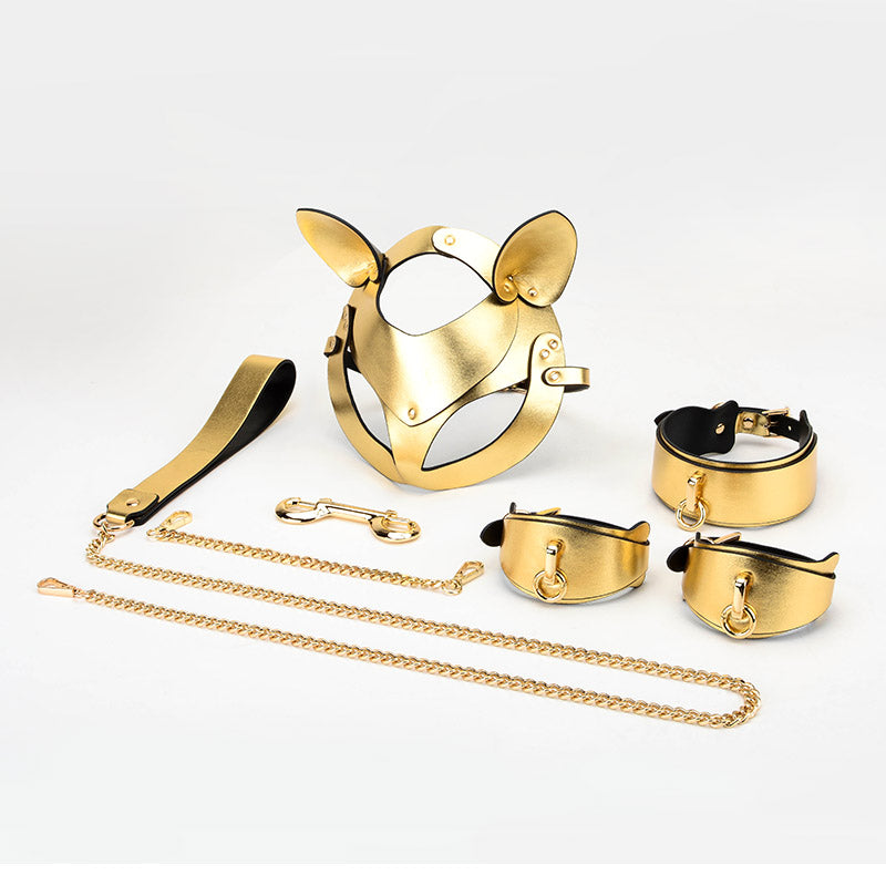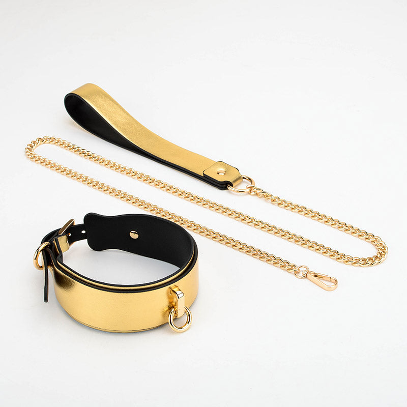K9 Gold&Silver Collar Handcuffs Leather Set